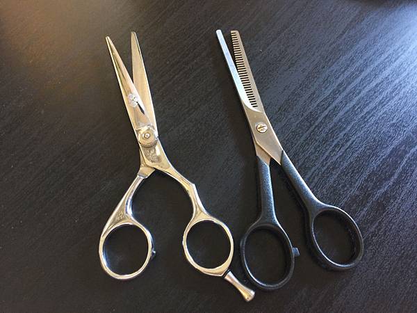 我用的是這兩把剪刀,左邊剪齊瀏海,右邊剪自然的層次
