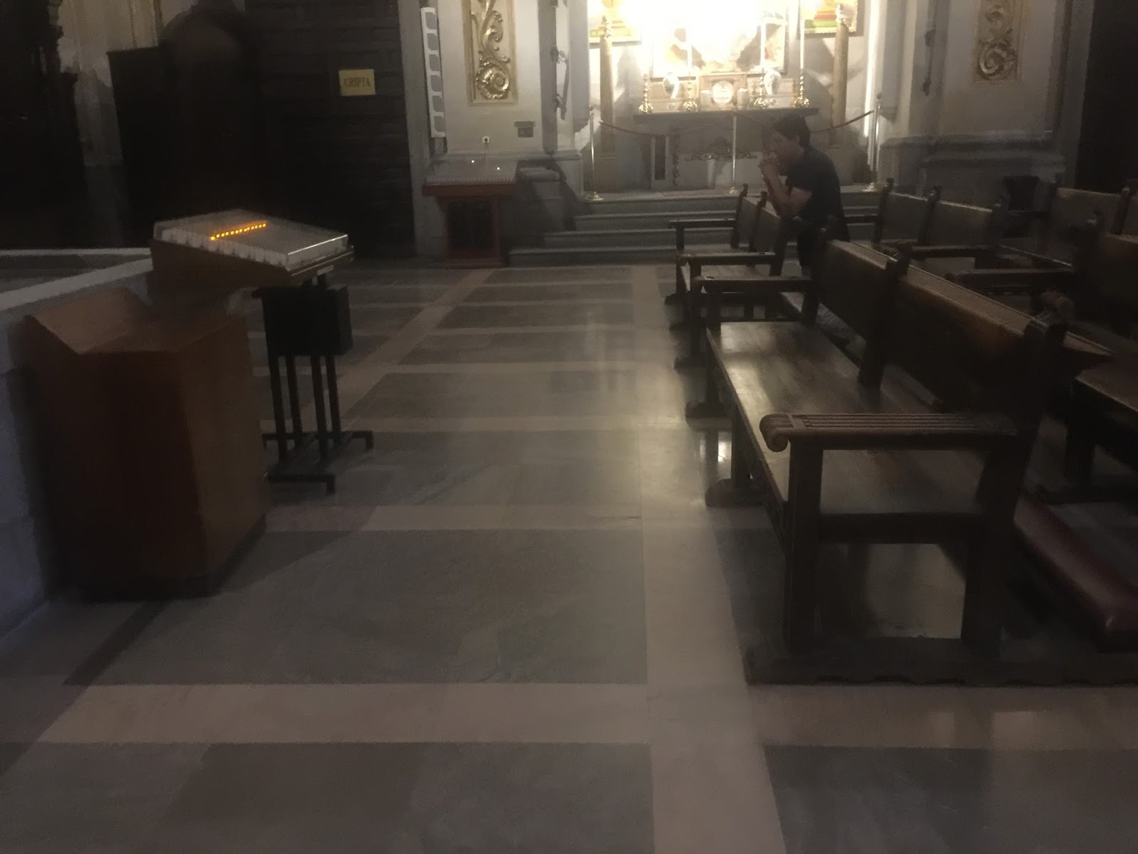以前去英國教堂的時候常常看到人點白蠟燭,這裡很多都改成電子蠟燭,投個錢幣就可以按鈕點燈,有點像台灣的光明燈,圖中的婦人點完燈又去摸一下耶穌的腳。