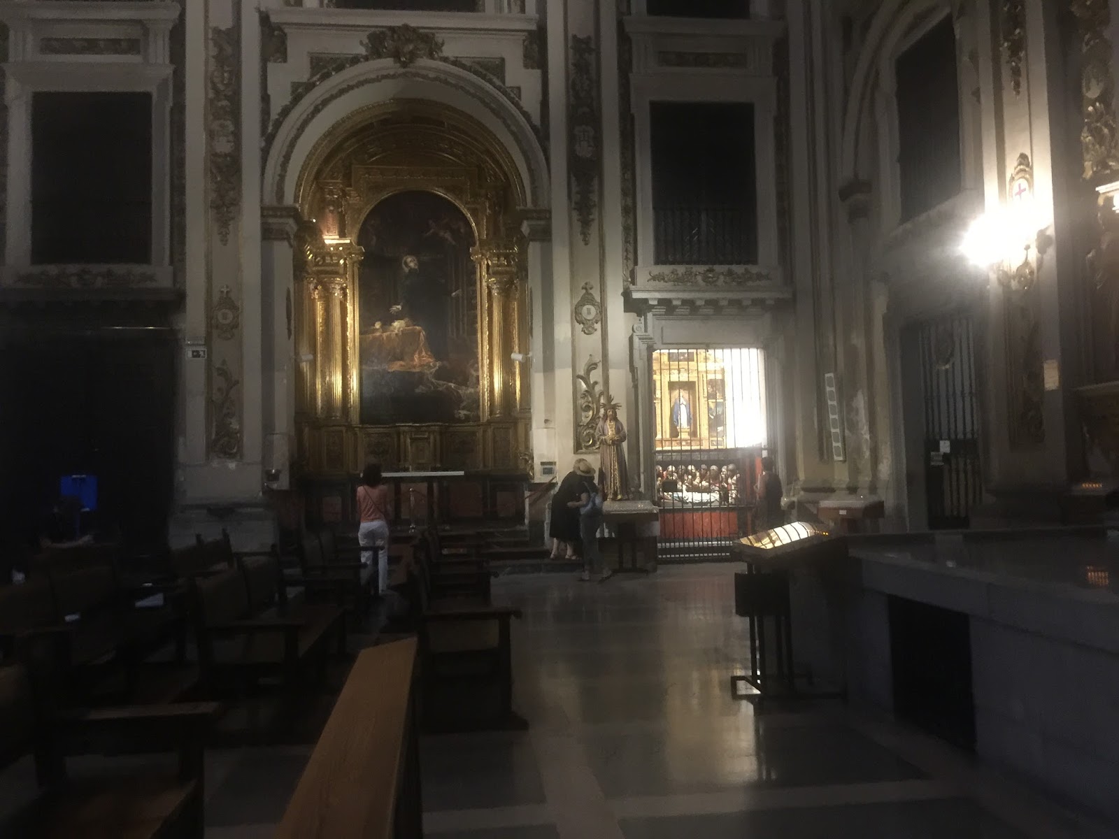 那種低調的姿態實在讓人很想跟著走進去瞧一瞧,結果,我們跟西班牙教堂的第一面,就是在這種好奇的心情下遇見了,一走進去看到兩旁的座椅,這不就是電影裡面結婚會走的步道嗎???