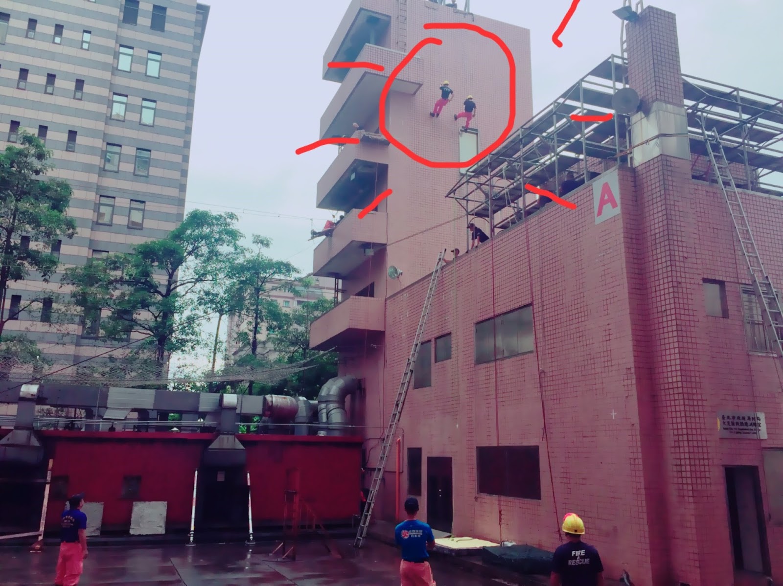 這天很幸運,剛好遇到消防隊員的集訓演練,訓練都是來真的,現場訓練上演蜘蛛人、垂吊、空中爬行,簡直就是Mission Impossible,很厲害,大人小孩都開了眼界~