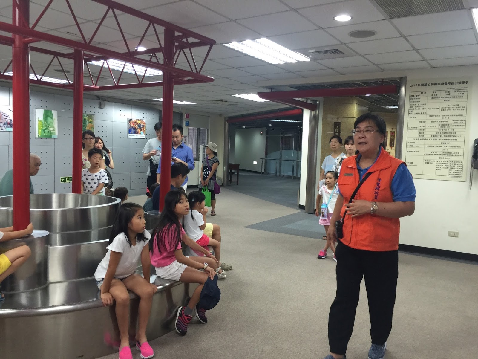 | 由於是預約團體參觀,大家集合之後導覽員就帶我們上樓說明防災知識 |