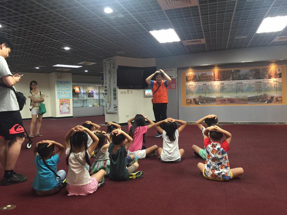 | 首先先說地震,導覽員問小朋友,地震時要躲哪裡? |