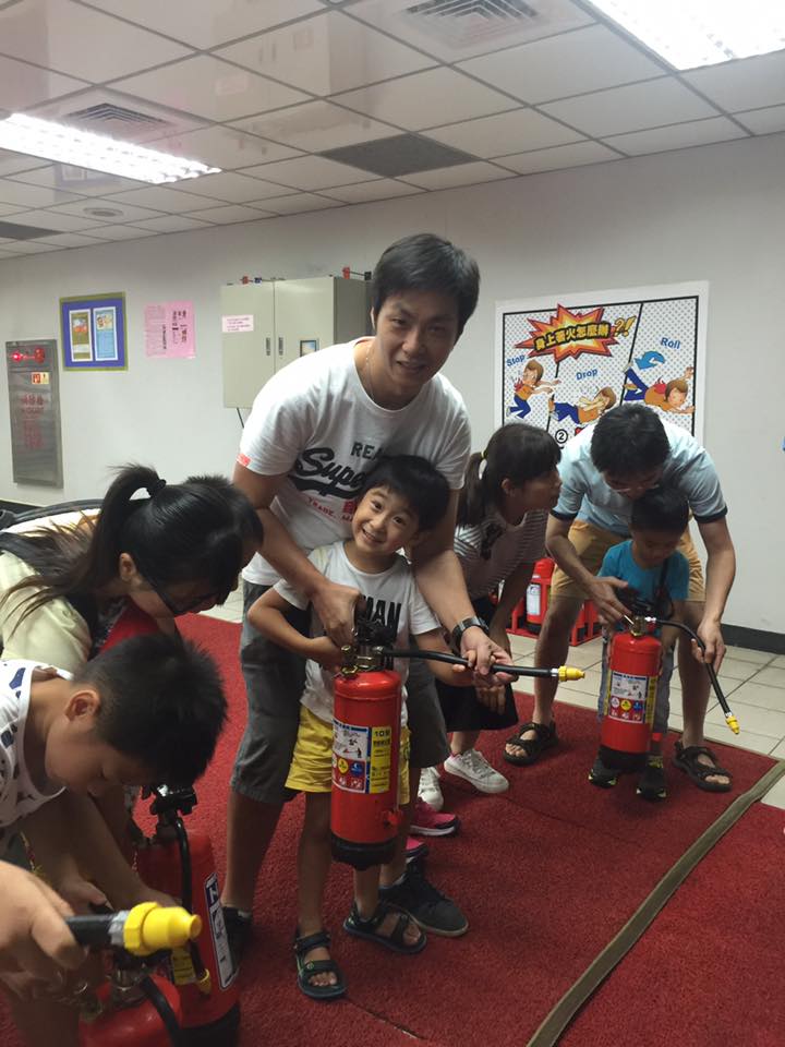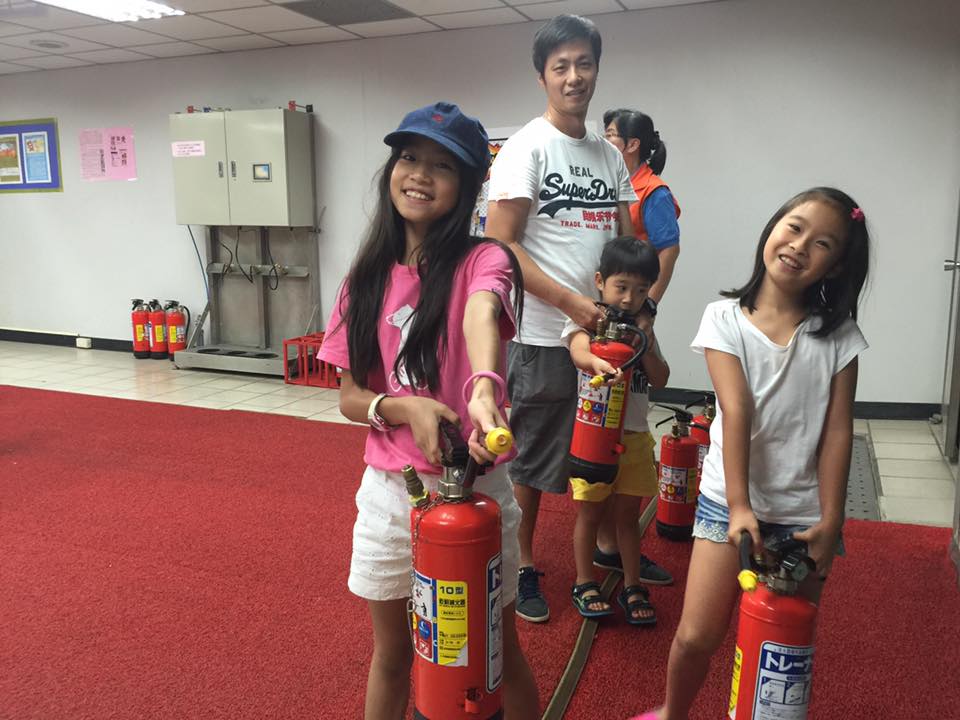 | 接下來練習使用滅火器,小學四年級以上可以操作 |